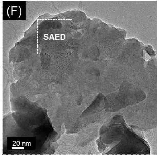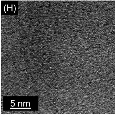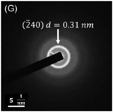 圖F為一個典型的砂磨后的Ta-LLZO顆粒的STEM照片。經(jīng)過砂磨的細顆粒表面較為粗糙,對其中白色虛線框標記的區(qū)域做選區(qū)電子衍射(SAED),結(jié)果如圖G所示。電子衍射花樣為展寬明顯的多晶德拜環(huán),最亮的環(huán)對應(yīng)于晶面間距為0.31nm的(240)面。該面間距比純Ta-LLZO粉體和H+交換后的Ta-LLZO晶格中的數(shù)值大。說明砂磨后的細Ta-LLZO顆粒表面和內(nèi)部晶格變形并多晶化。圖H為顆粒表面的HRTEM原子排列圖像。該圖像表明,Ta-LLZO在極小的疇區(qū)內(nèi)(1~2nm)有序排列,但不同疇區(qū)的排列完全是無序的,進一步證實了砂磨顆粒的多晶化,利于后續(xù)燒結(jié)。